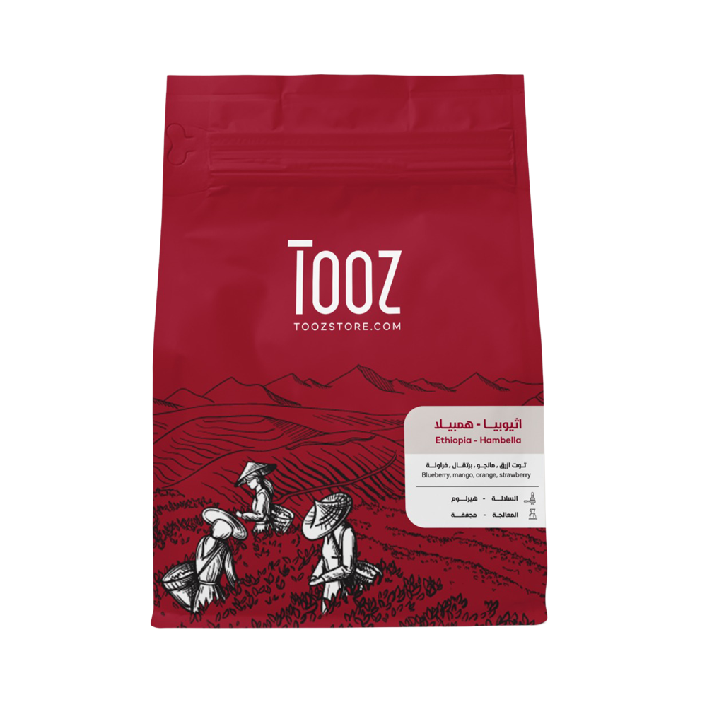 وصف المنتجمحصول اثيوبي هامبيلا الفاخر، معالجته مجففه.السلالة: هيرلوم - اثيوبياالمعالجة: مجففه.الايحاءات: توت ازرق, فراولة، مانجو, برتقال.مناسبة للإسبريسو والتقطير(يصلكم المنتج حبوب بن كاملة غير مطحونة)